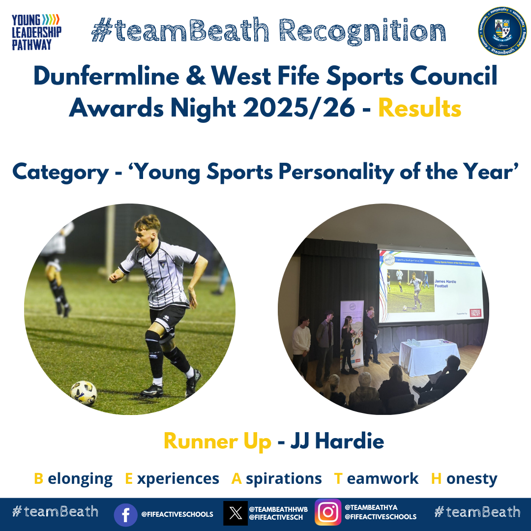 The evening brought together athletes, teams, volunteers, and supporters to acknowledge the individuals who have demonstrated exceptional commitment both on and off the field. Beath High School was proudly represented across multiple categories, with several nominees earning top honours and runner‑up awards for their contribution to school and community sport.