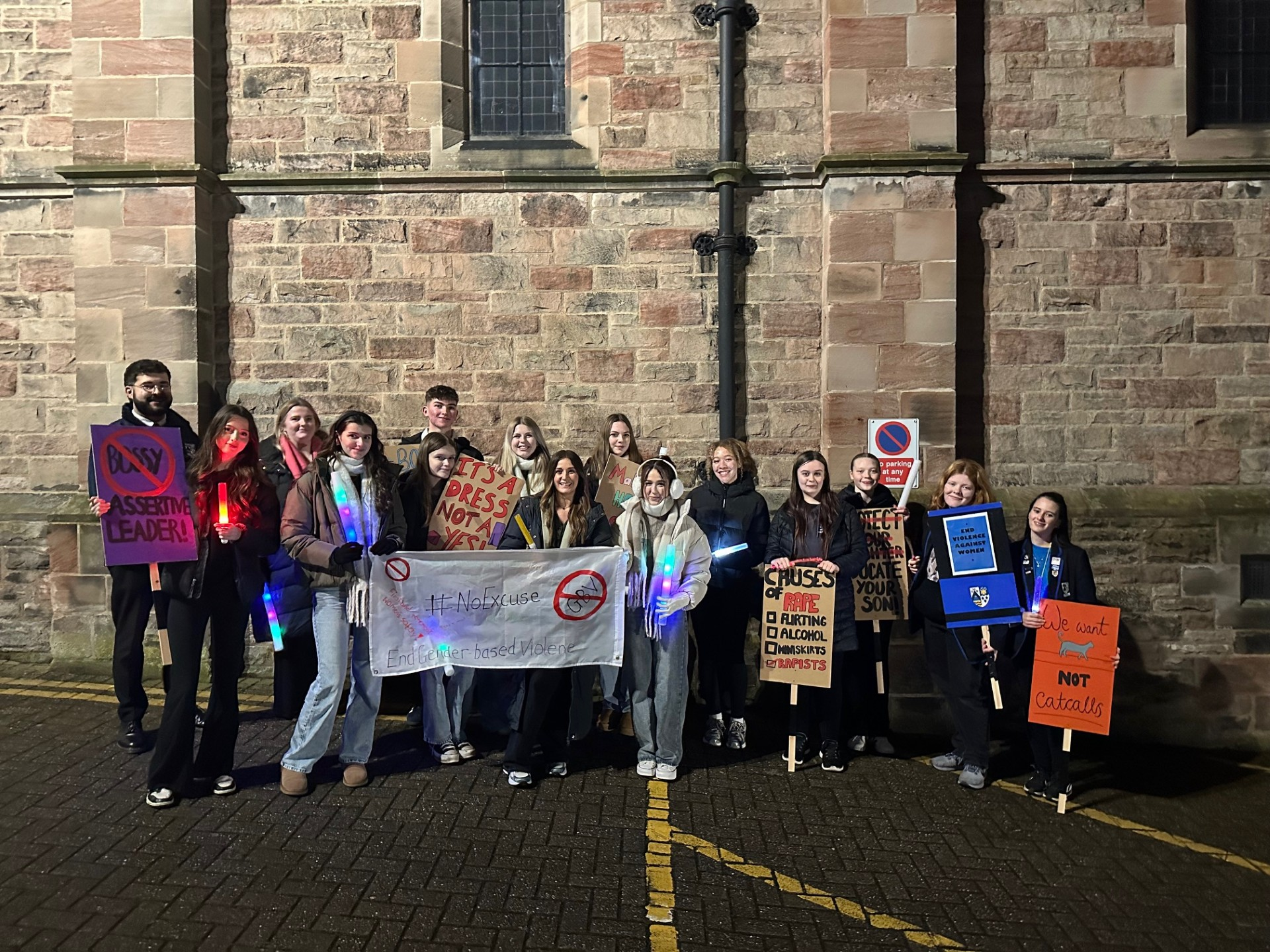 On Wednesday the 3rd of December, MVP pupils attended Reclaim the Night, a protest against violence against women. First there was a walk through Dunfermline High Street down to the Glen Pavillion, with pupils carrying signs and banners they had made, along with many others who were protesting. The atmosphere was very emotive and powerful as so many people had gathered for the same cause with the same beliefs. There were guest speakers at the Glen Pavilion after the protest, including MSP Claire Baker. Beath pupils Lily Riach, Skye Waterson, Hazelle Hendricks, and Amelia Buchan presented first as part of the event, discussing what MVP looks like in school, the work they do, and how misogyny has an effect on education. Mrs Wyse also presented first with a very moving speech on why she is involved in MVP. Overall, it was a very successful evening, with other pupils (Ryan McArthur, Maisie Easton, and Iona Paterson) running the Beath High School stall where members of the public at the event could ask questions about MVP.